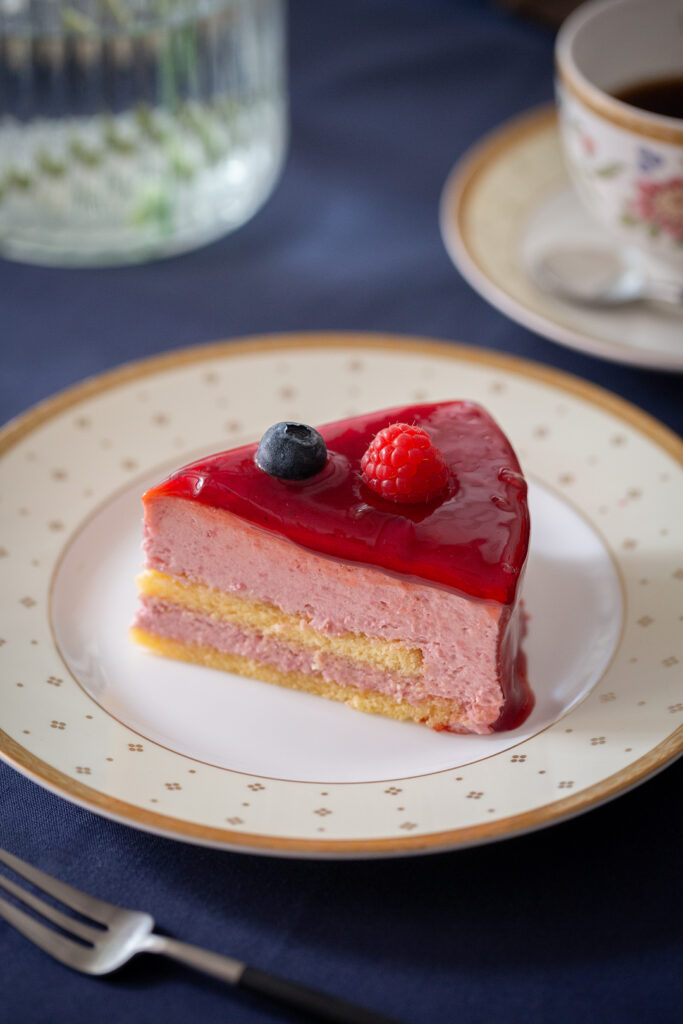 甘酸っぱいフランボワーズを贅沢に使った、冬にぴったりのムースケーキ。