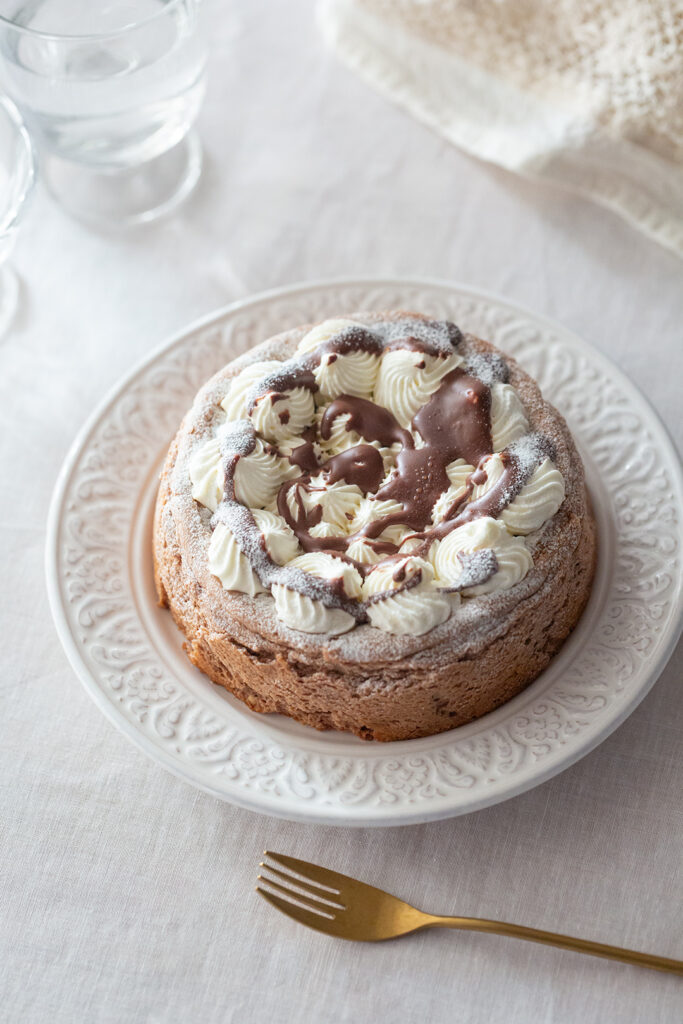 ココアパウダーをまとった波打つような天面は、贅沢な厚みのエスプレッソクリームを包み、中にはさらにエスプレッソシロップを染み込ませたチョコスポンジと、なめらかなマスカルポーネクリームが層を織りなします。
