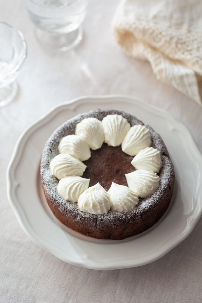 カカオの豊かな香りを楽しめる濃厚なチョコレート生地に、ベリーの風味を閉じ込めたスポンジを重ねた、冬限定のチョコレートケーキです。